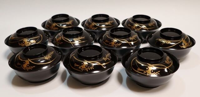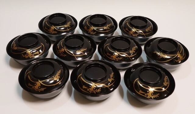 稲小槌蒔絵 吸い物椀 10客
