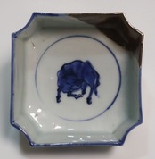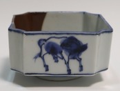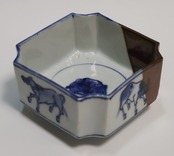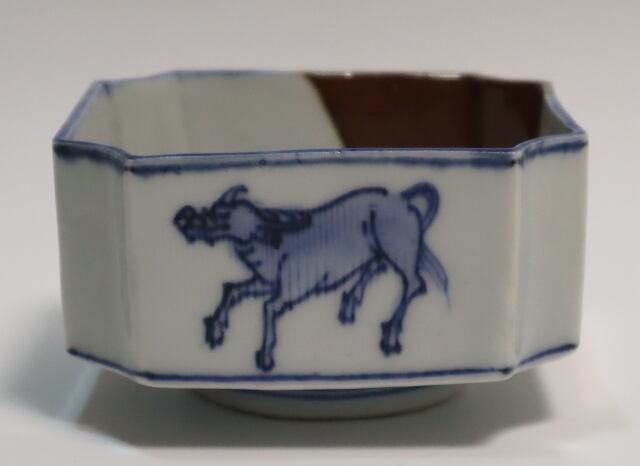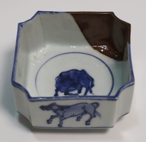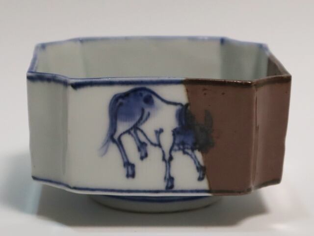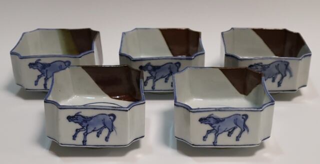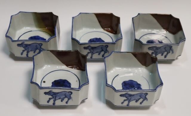 永楽善五郎造 染付半柿牛之図 四方向う付 5客