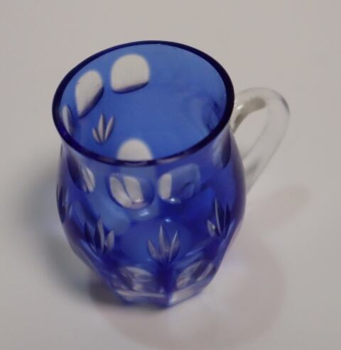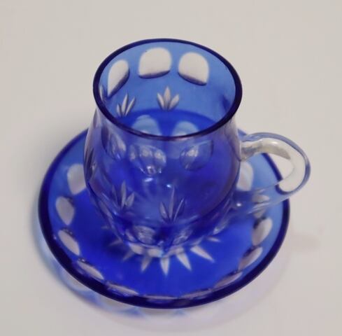 商品説明・青色カットガラス 皿付き小器 6客 ケース有