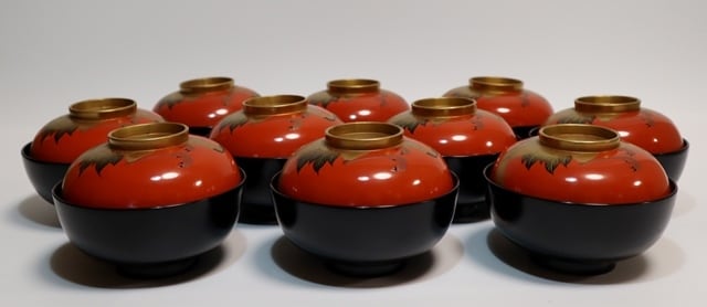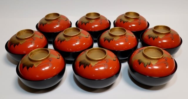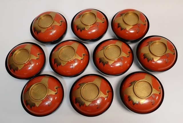 旭日鶴蒔絵雑煮椀 10客
