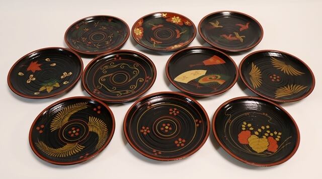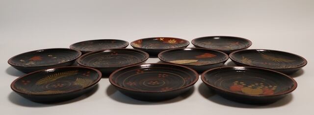 商品説明・田中表阿彌造 長寛写画変銘々盆 10枚 共箱
