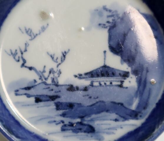 商品説明・古伊万里染付 山水紋縁高小皿 7客 箱なし
