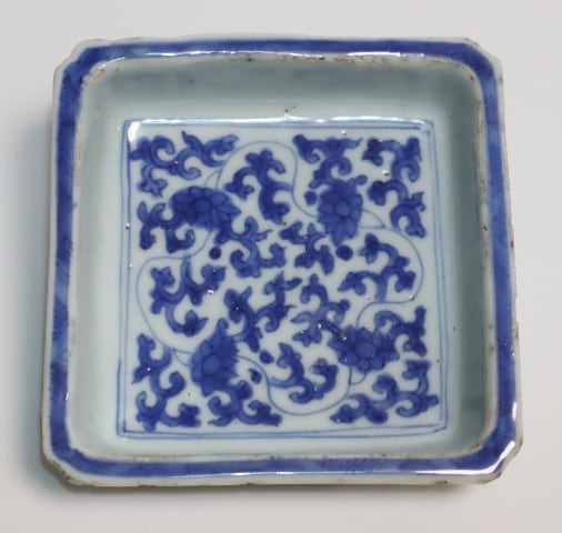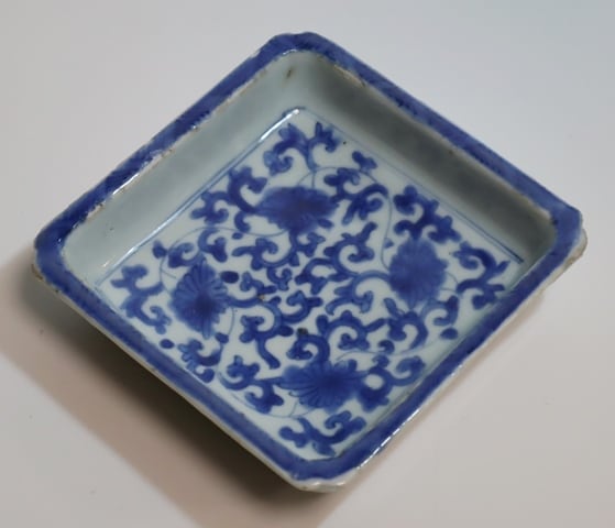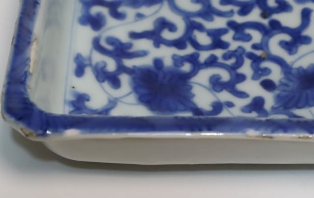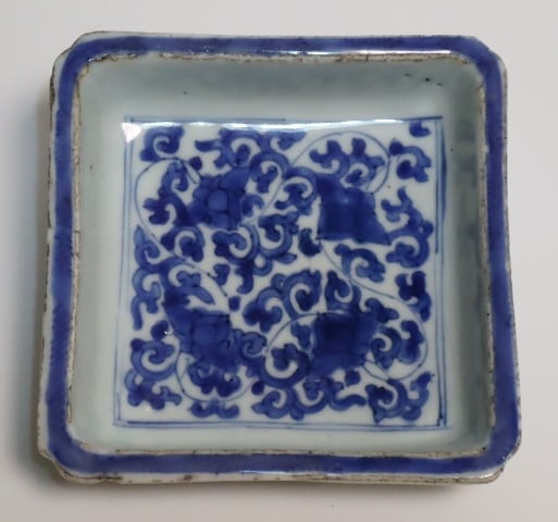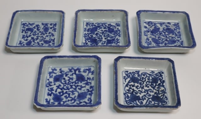 商品説明・古染付花唐草紋 四方皿 5客 段箱有