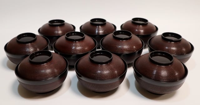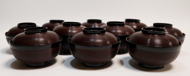 商品説明・糸目内黒菊水蒔絵 煮物椀 10客 箱有