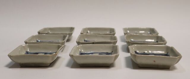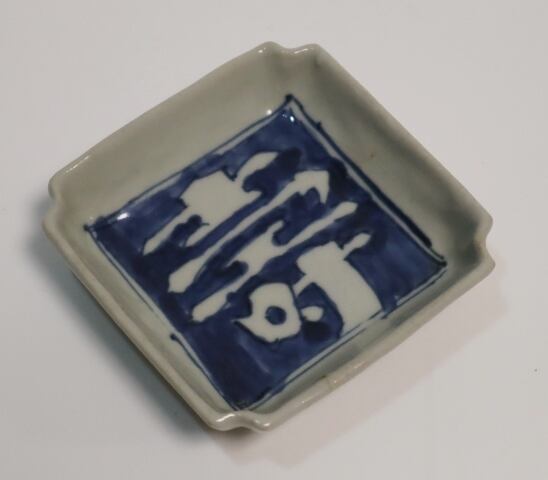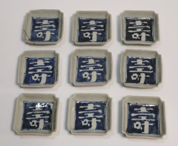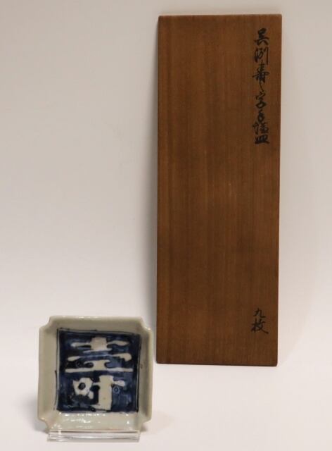 商品説明・呉須寿字四方手塩皿 9客 箱有