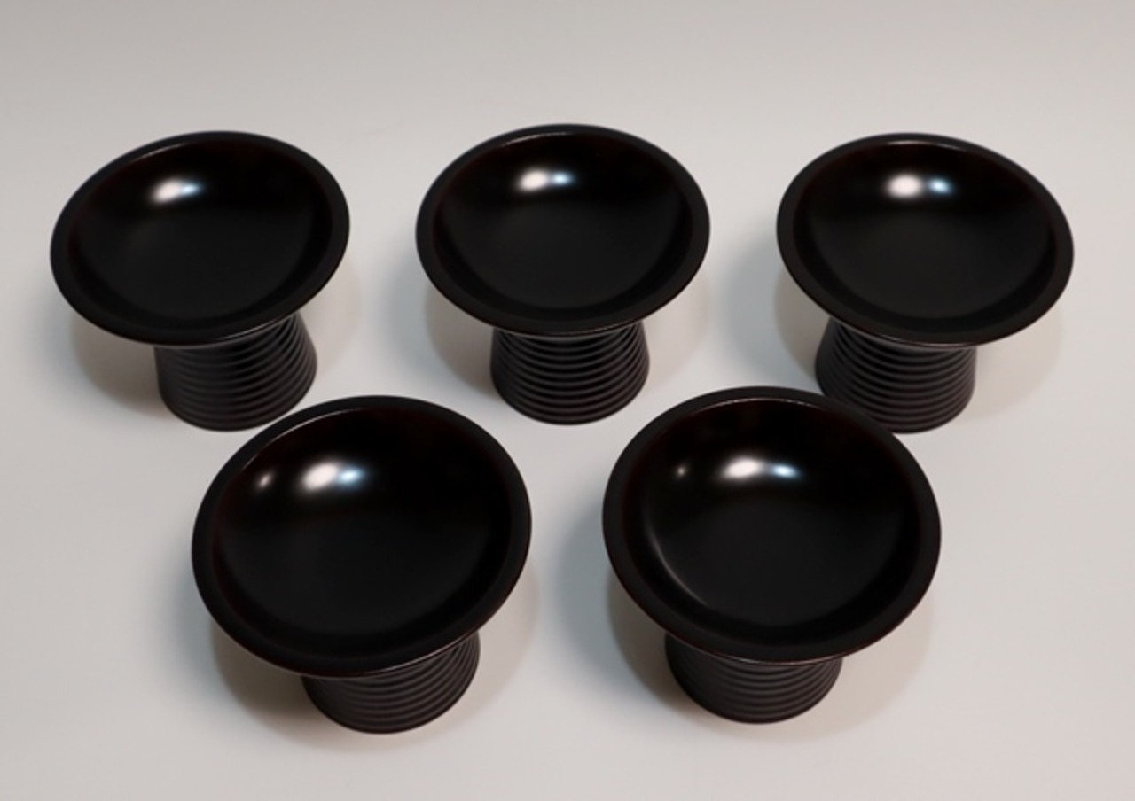 商品説明・塗園造 溜塗盛器 5客 箱有