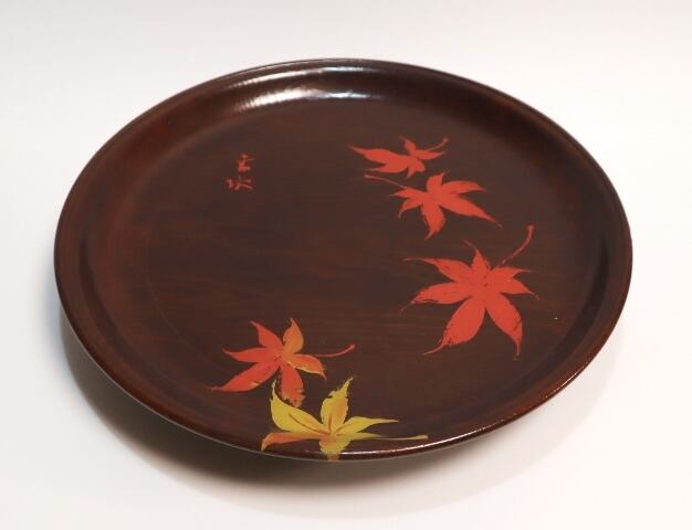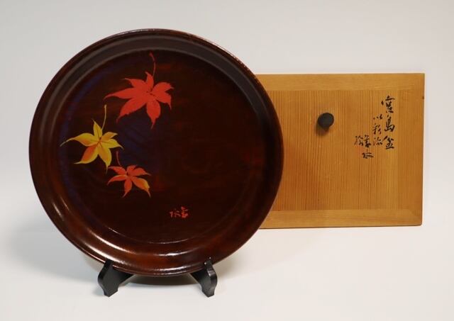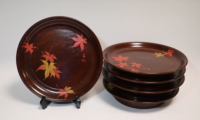 商品説明・須磨対水漆紅葉画 宮島盆 5客 箱有