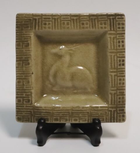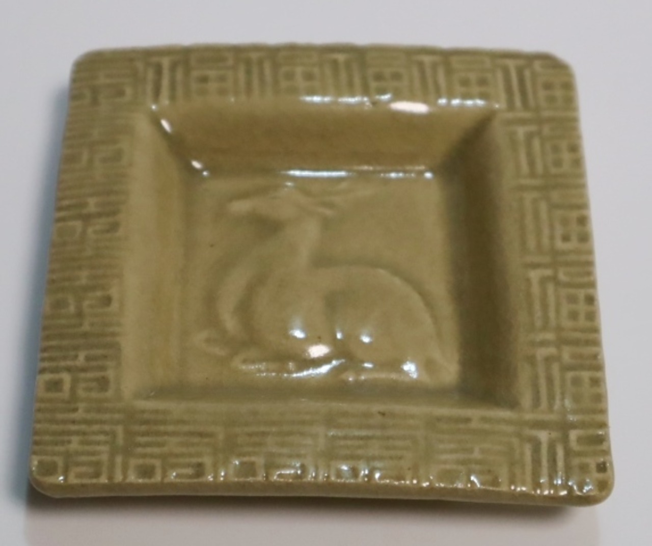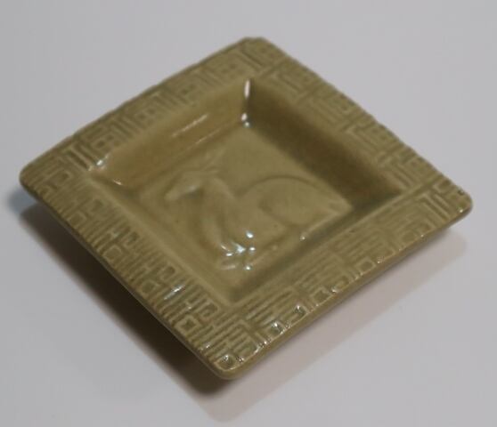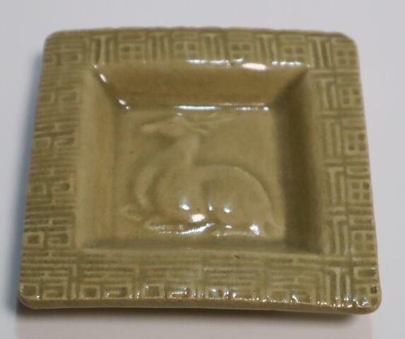 商品説明・赤膚焼(奈良) 鹿福字浮彫四方小皿 10客 箱有