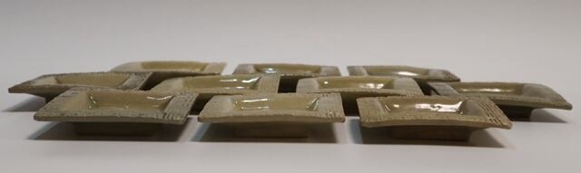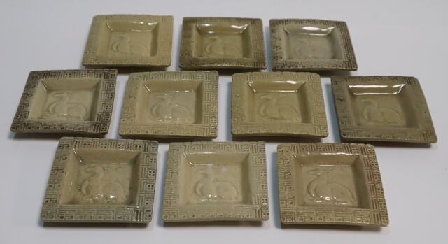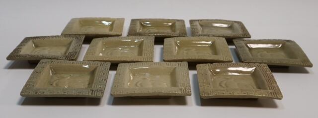 赤膚焼(奈良) 鹿福字浮彫四方小皿 10客