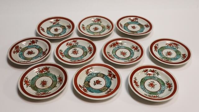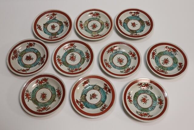 商品説明・古伊万里赤絵小皿 10客 時代箱有