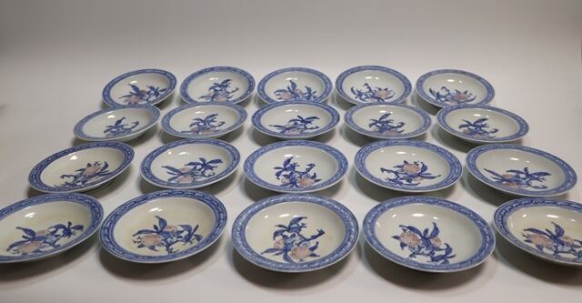 商品説明・永楽善五郎 14代得全造桃絵皿 20客 共箱