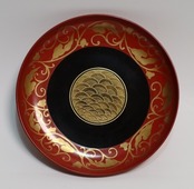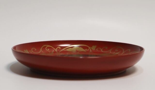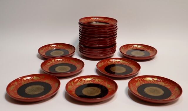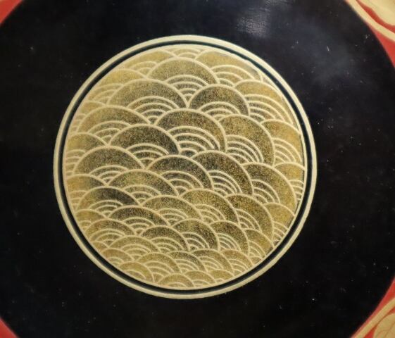 商品説明・朱青海波に唐草蒔絵 銘々盆 20客 箱有
