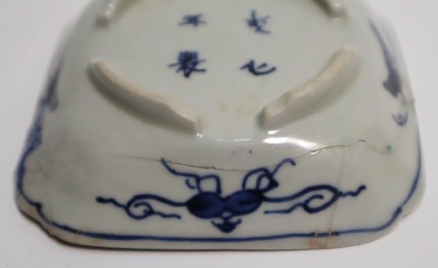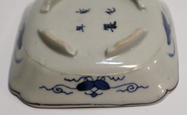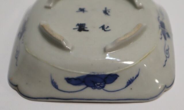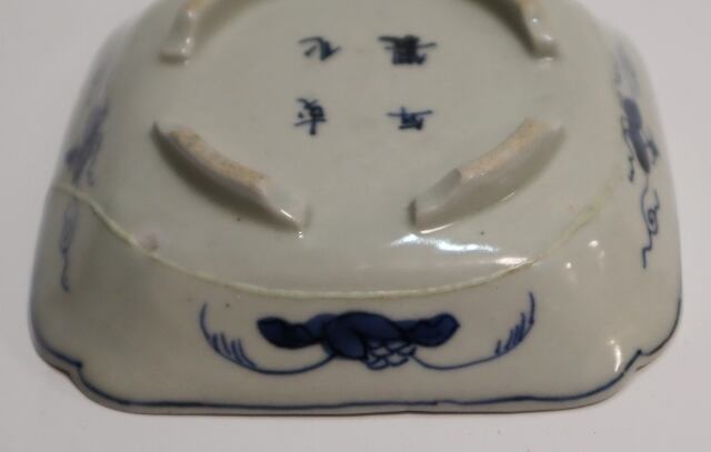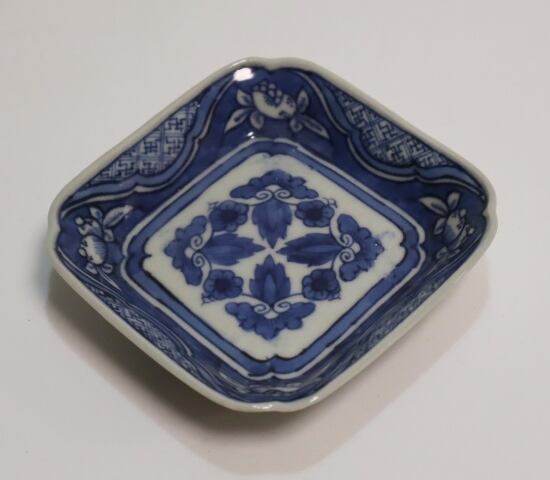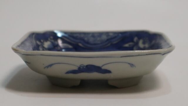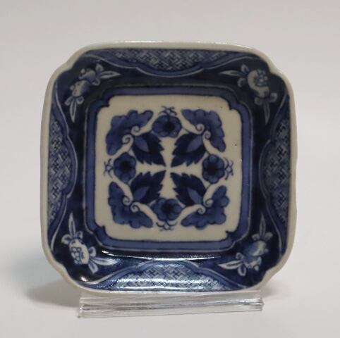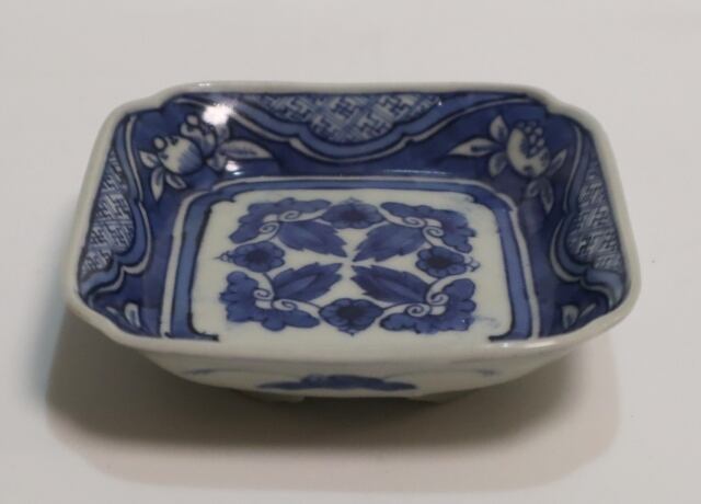 商品説明・古伊万里染付 花実紋足付四方手塩皿 14客
