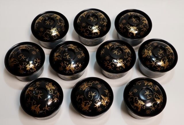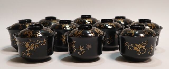 商品説明・春孝造松竹梅唐草画 吸い物椀 10客 共箱