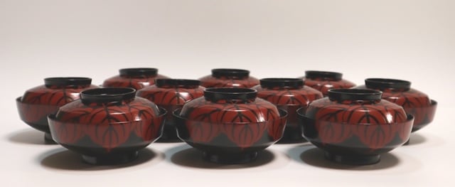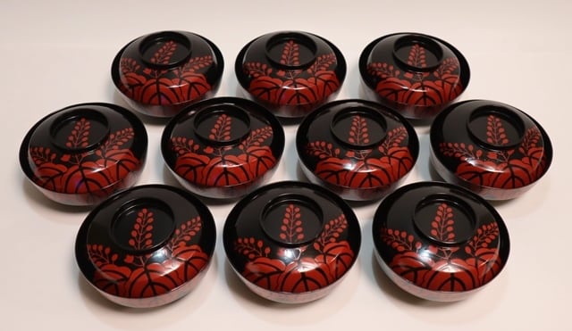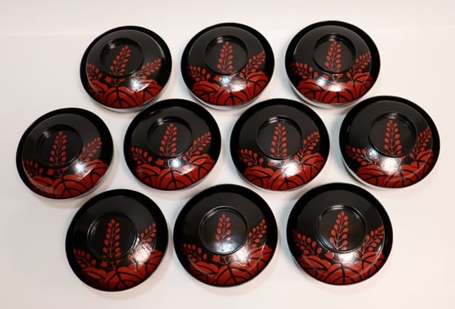 商品説明・表朱塗桐紋裏鳳凰蒔絵 菓子椀 10客