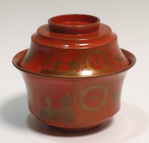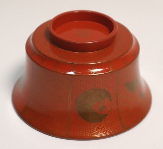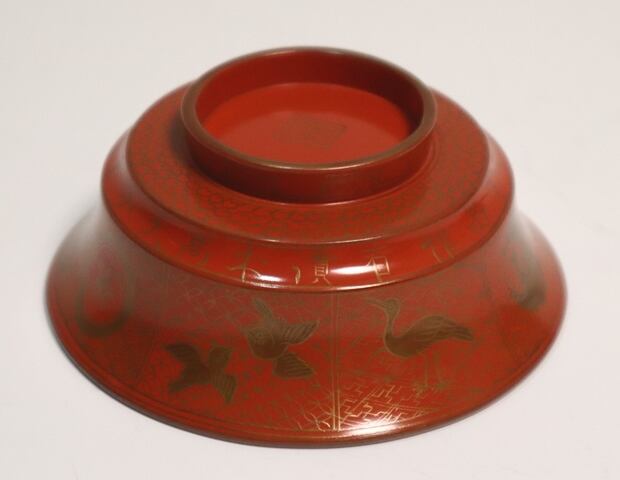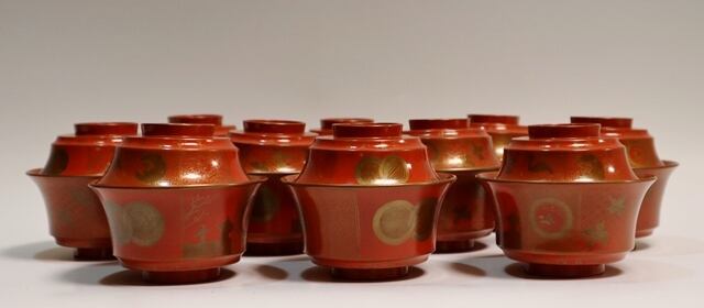 商品説明・橘屋友七造 朱塗鶴小紋蒔絵吸い物椀 10客