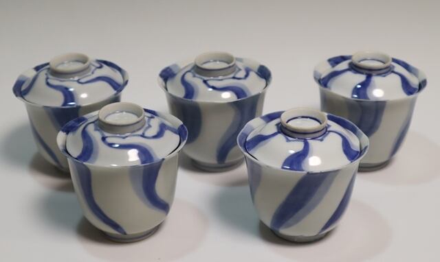 商品説明・永楽善五郎造 染付捻り紋吸い物碗 5客