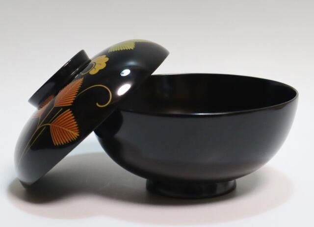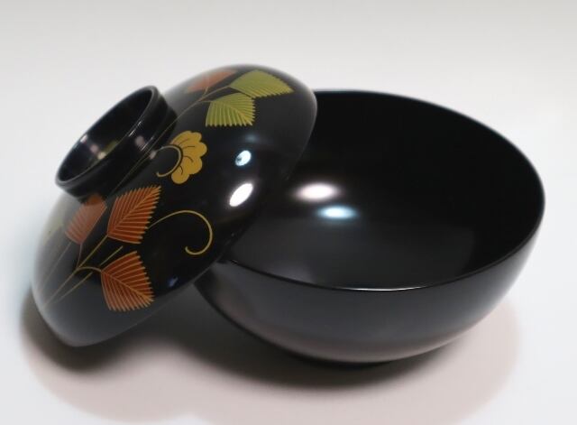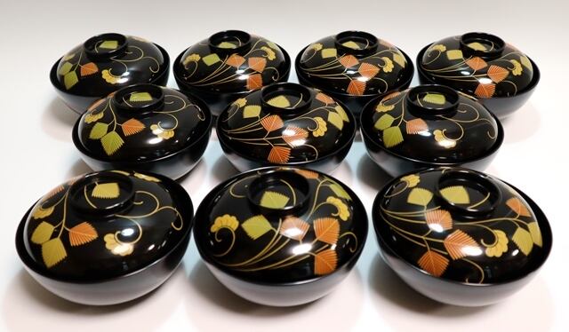 商品説明・松唐草蒔絵真塗煮物椀 9客
