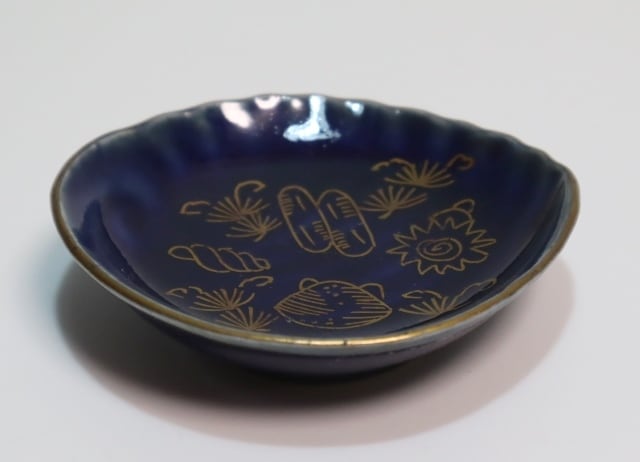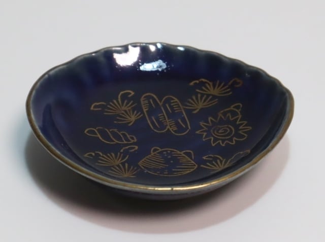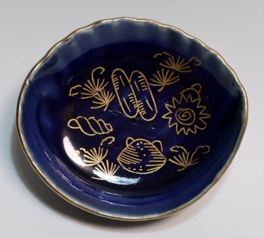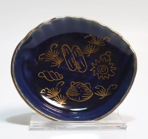 商品説明・古伊万里 瑠璃金彩貝型豆皿 1客