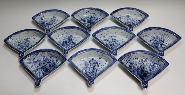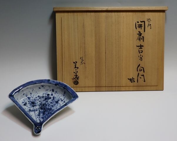 商品説明・須田菁華造 染付開扇吉字向う付 10客