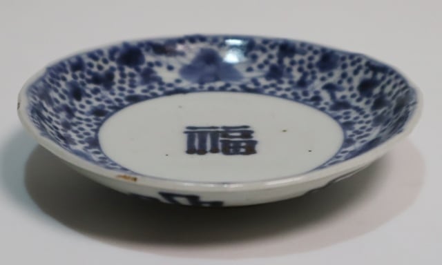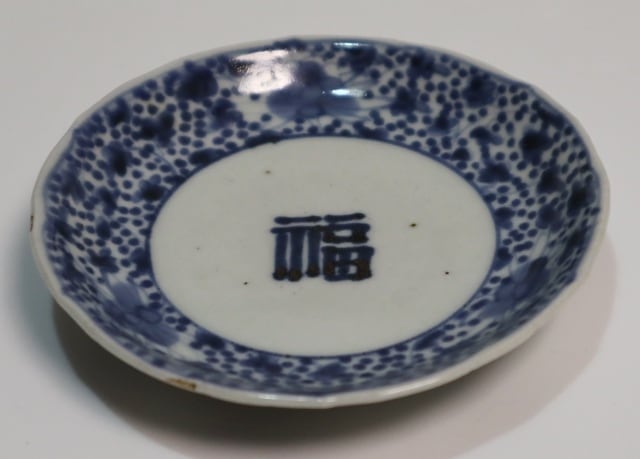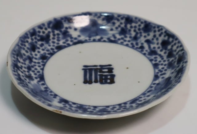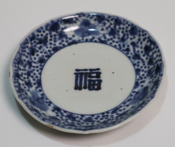 商品説明・古伊万里染付 福字花唐草紋小皿 1客