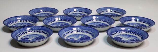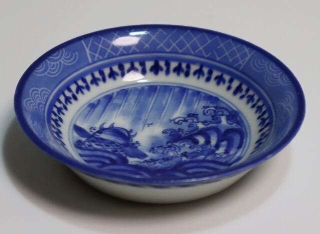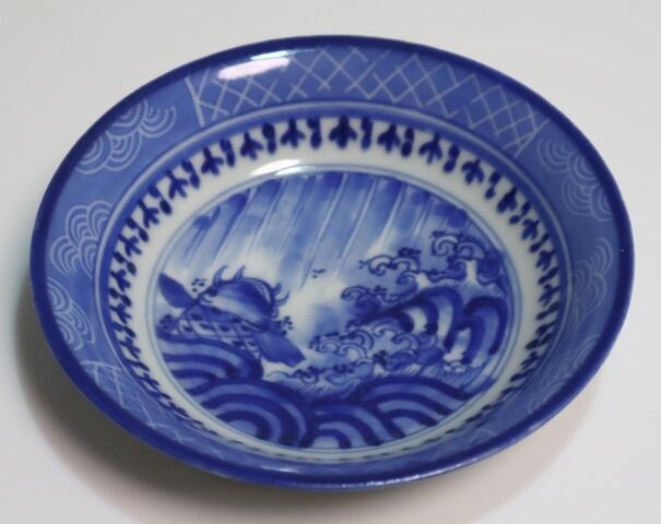 商品説明・古伊万里染付 波に鯉紋小皿 10客