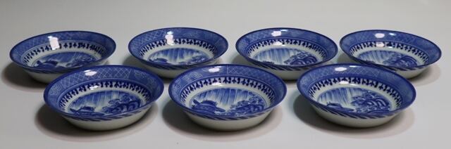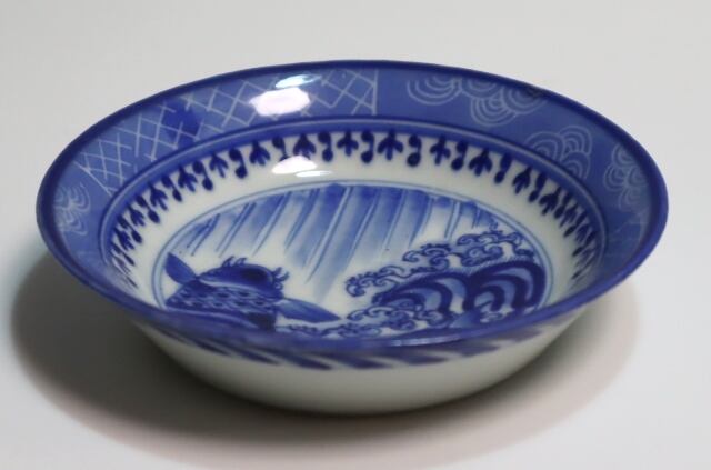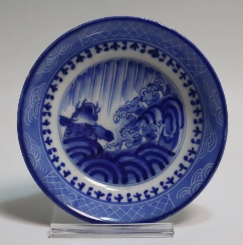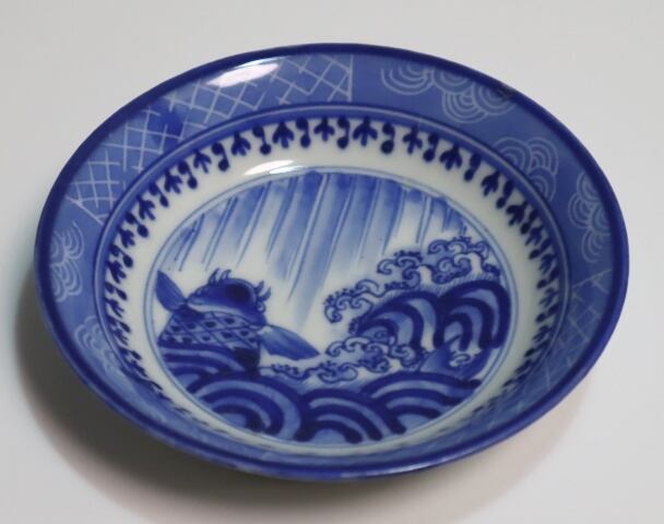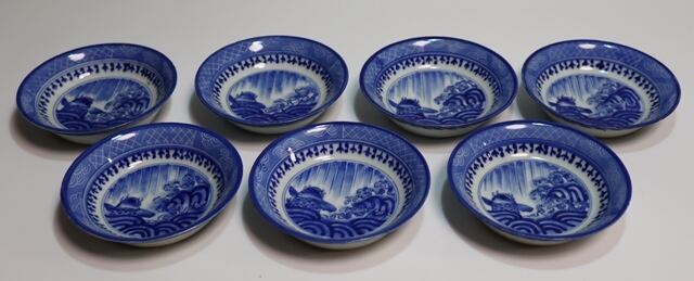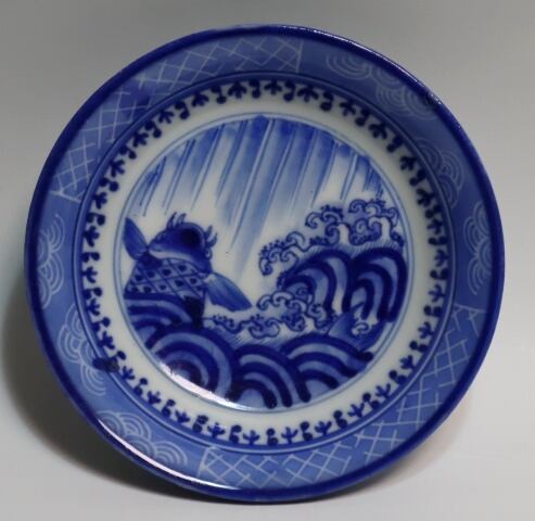 商品説明・古伊万里染付 波に鯉紋小皿 7客