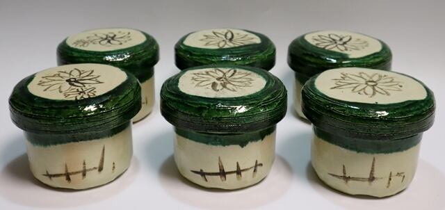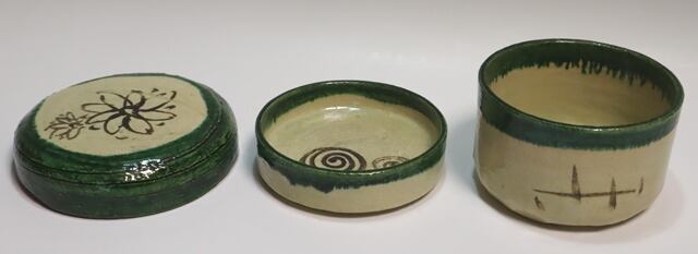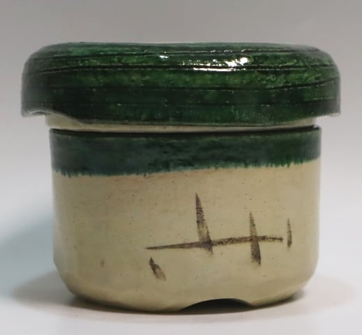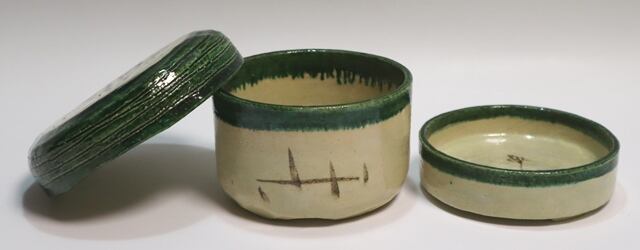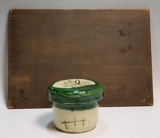 商品説明・楽10代旦入造 織部釉蓋物 6客