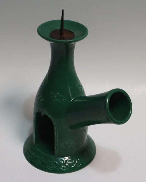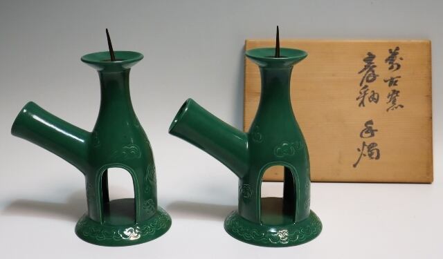 商品説明・萬古焼陶華園製 青釉手燭 一双