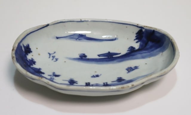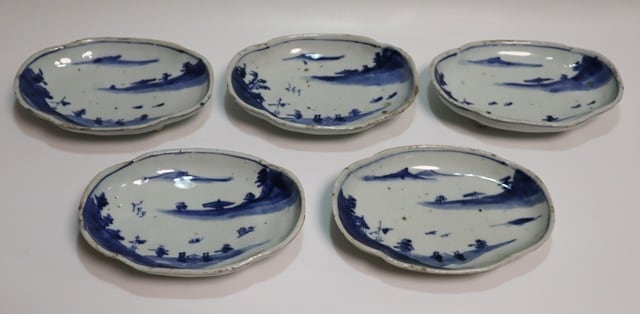 商品説明・古染付山水紋皿 5客