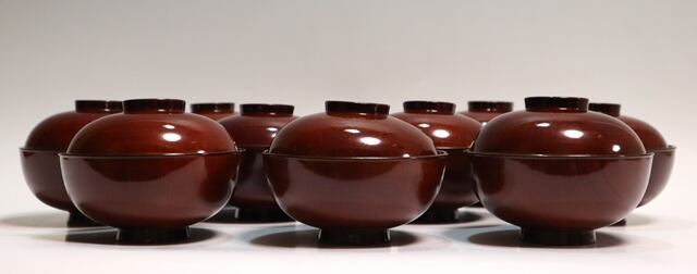 仙斉形溜丸花蒔絵煮物椀 10客