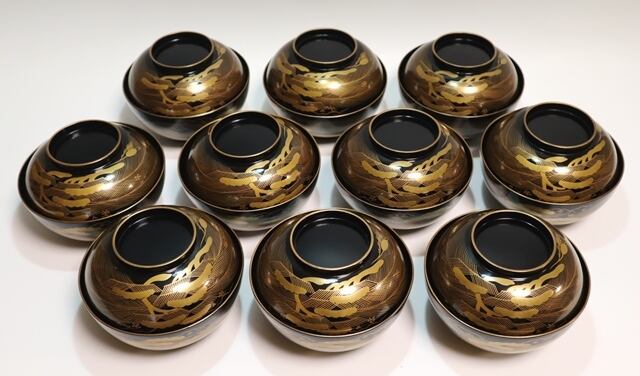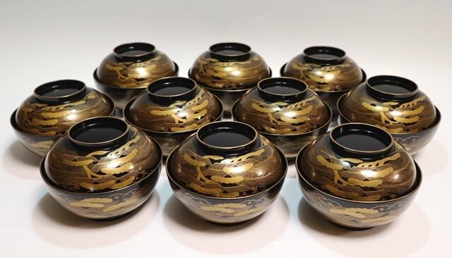 商品説明・松竹寿鶴亀蒔絵煮物椀 10客