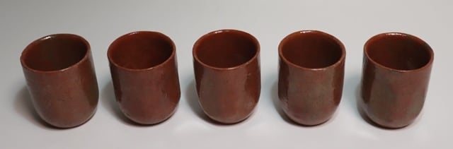 商品説明・楽6代左入造 赤楽筒向う付 5客