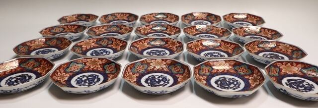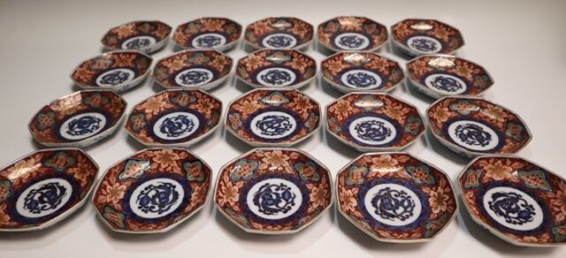 古伊万里染錦八角小皿 20客