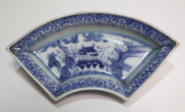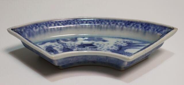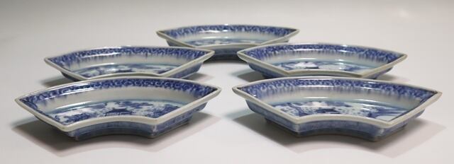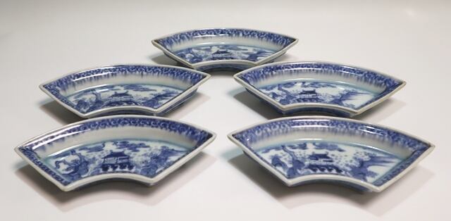 商品説明・古伊万里染付 葛屋紋扇形皿 5客